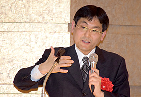 近畿大学の薬学部・農学部・生物理工学部・附属農場・東洋医学研究所が連携し、知的財産を持ち寄るプロジェクトを開設し、研究成果である知的財産、大学技術移転権を収益の基盤として、2004年1月、近畿大学発のベンチャー企業として、株式会社ア・ファーマ近大を設立。天然物を利用した機能性食品の開発による疾病の予防と治療への積極的なサポート活動等、力強く企業活動を展開されていることを紹介いただきました。