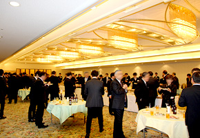 シンポジウム後は、同リーガロイヤルNCBの最大規模の宴会場「松の間」において、芦屋市長 山中健様から御来賓のご祝辞を賜り、当機構副理事長・滋慶学園グループ総長の浮舟邦彦氏の乾杯のご発声で、情報交換会が盛大に開催され、講師も交えて多くの参加者による活発な交流と意見交換が行われました。