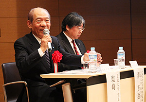 第1部に引き続き、第2部ではパネルディスカッション形式とし、超高齢社会日本から世界へ ~産学連携が切り拓く未来医療健康都市への期待~ というテーマでお話していただきました。座長は京都府立医科大学 学長 / 医療国際化推進機構 理事長 吉川 敏一 氏、パネラーは、第一部の先生方に加え、近畿大学学長 塩崎 均 氏、塩野義製薬(株)取締役・専務執行役員経営戦略本部長 澤田拓子氏、阪急電鉄(株)不動産事業本部都市マネジメント事業部長 谷口丹彦氏、サラヤ(株)代表取締役社長 更家悠介氏、ダイキン工業(株)テクノロジー・イノベーションセンター・リサーチ・コーディネーター/日本機械学会フェロー 伊藤宏幸氏に登壇していただきました。