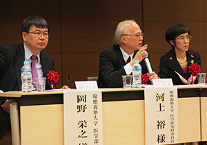吉川 氏:産業界では「下町ロケット」のようにある程度、産学協同ができていると感じていますが、これも関西の独特の雰囲気が産学共同の雰囲気を生んでいるんではないかと感じています。外国からの研究者や患者さんもどんどん受け入れていきたいが、一つの大学では限界があり、ばらばらでやるよりもどこかに受け皿になるような拠点がある方が患者さんの治療や人的な交流・教育も含めて都合が良いのではないかと思います。その拠点は医学部だけではなく、様々な分野が領域を超えて集まって研究を進めていける拠点となることが望ましいと思います。我々の医療国際化推進機構がこれを推進していこうと思っています。そしてこれが未来健康都市の開発に繋がっていくのではないかと期待しています。